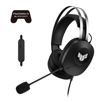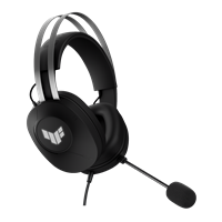 Wired gaming headset with 40 mm ASUS Essence drivers, virtual 7.1 surround sound, TeamSpeak-certified microphone, lightweight 297-gram design, durable ear cushions, plus symbolic TUF logo lighting
