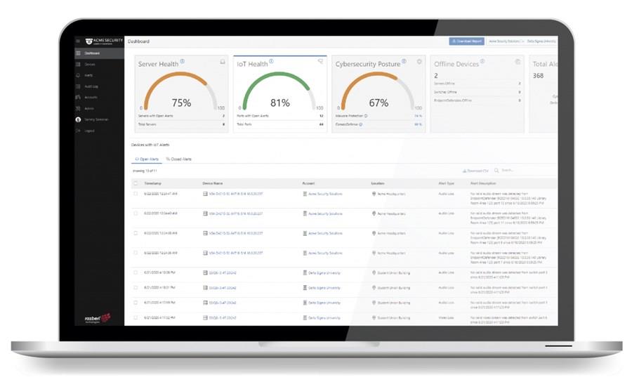 • Detects cyber posture and problems with servers, cameras, and other IoT devices and delivers real-time alerts