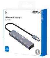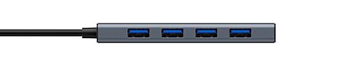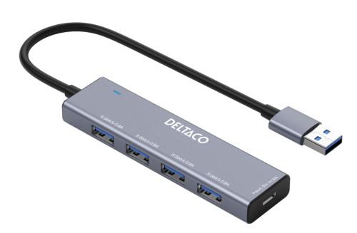 USB-A hub with 4x ports and additional power supply input, ideal for connecting more power-demanding peripherals such as external hard drives, USB monitors and headsets. Connect to your device using USB-A.