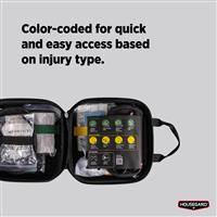 Väskan är kompakt men rymmer allt du behöver för att snabbt kunna hantera sår, brännskador och blödningar. Dess hållbara design och tydliga fack gör det enkelt att snabbt hitta rätt utrustning i en nödsituation.
