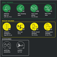 - Innehåller 53 delar för omfattande sårvård
