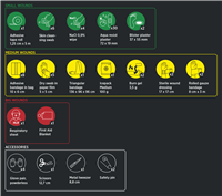 - Innehåller 74 delar för omfattande sårvård och akut hjälp