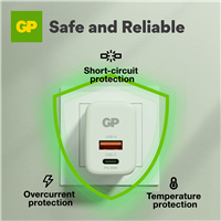 Med GP 30W Power Delivery (PD) väggladdare kan du ladda två enheter samtidigt. Den är så liten och kompakt att den får plats i fickan. Med ett pålitligt skyddssystem håller den dina enheter säkra under laddning.