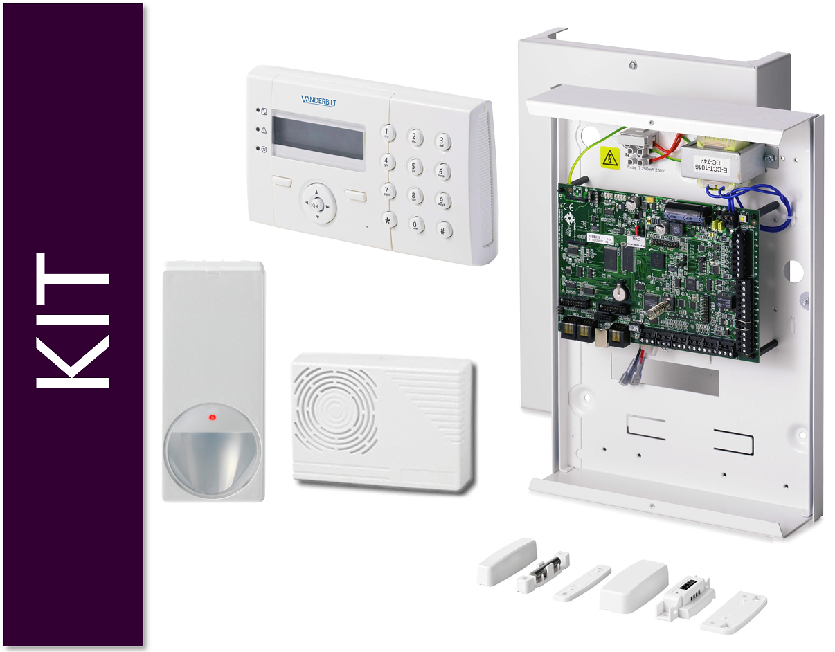 The SPC Ready2Go kit consists of following standard products: 1x V54541-C109-B100 SPC4320.320-L1 Intrusion CP,G2 1 x N54536-Z231-A100 MK440 Magnetic contact, white 1 x N54539-Z147-A100 SP203 Indoor sounder 1 x V54530-F114-A100 PDM-I12 PIR detector 1 x V54543-F101-A100 SPCK420.100 LCD keypad.2x16 Char.