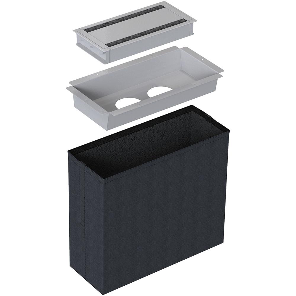 A ready-made kit that makes it easy to get a stylish and functional solution for the conference table. Complete with table cover that can be opened from two sides, spacious tray with plenty of space for connectors, textile bag and power strip. The textile bag hides hanging cables in an efficient and discreet way. See the respective product for the various characteristics.