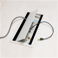 A complete package that makes it easy to create a stylish and functional solution for the conference table. The openable lid provides convenient access from both sides, and the spacious compartment offers plenty of room for outlets and cables. The included textile bag effectively and discreetly hides hanging cables.