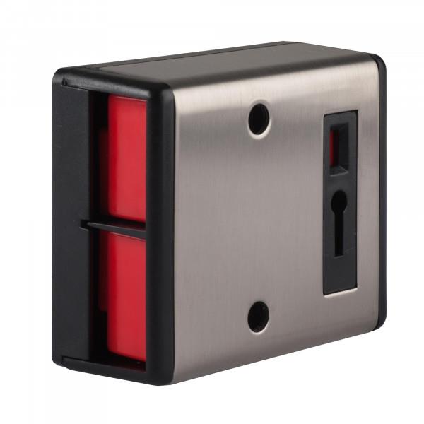 Överfallskontakt, dubbeltryck med nyckelåterställning. Valbart slutande eller brytande larmkontakt, genom att flytta magneten i kontakten.