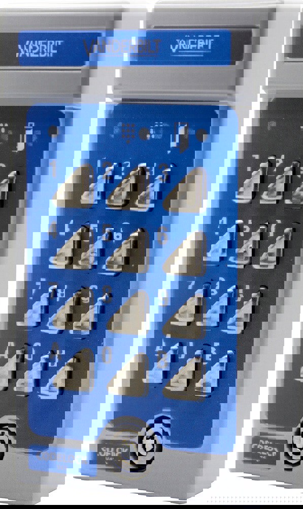 Kodlås V42 styr ett lås och har två 4-siffriga koder. Avsett för inom- eller utomhusbruk. Utanpåliggande montage. Gjuten metallkapsling med knappar i rostfritt stål. Bakgrundsbelyst knappsats.