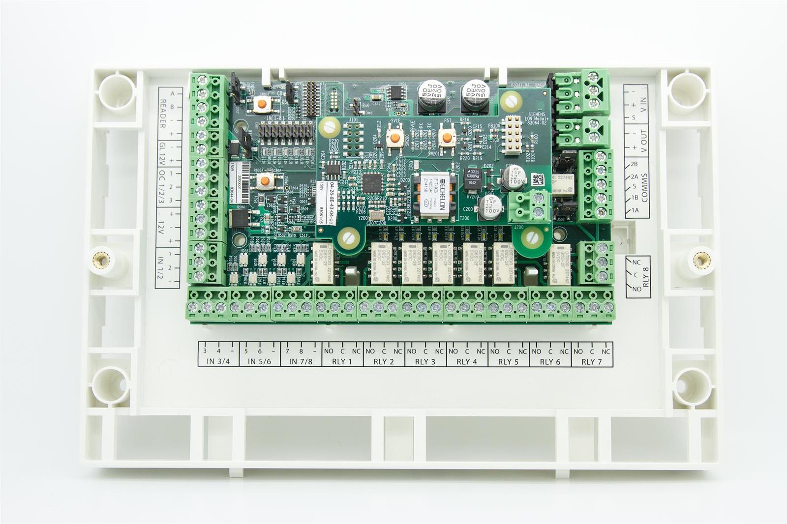 E200 används för installation av larm och passerkontroll. E200-enheten har 8 stycken ingångar, 8 stycken utgångar och ingångar för kortläsare och knappsats. Ingångarna kan ställas in för dubbellbalanserad larmslinga eller strömslinga för direktanslutning av glaskross- eller branddetektorer. Utgångarna kan fritt programmeras för olika styrfunktioner. Levererar avsäkrad lokal 12V eller matningsspänning. E200 stöds från Omnis version 4.1 SP7 och senare. Ifall man vill utnyttja alla 8 utgångarna istället för enbart 4 stycken, så behöver man Omnis version 6.2 eller senare. E200 stödjer våra populära Mifare VRxxS-MF kortläsare via RS485 gränssnittet. E200 har också ett clock/data och Wiegand gränssnitt.