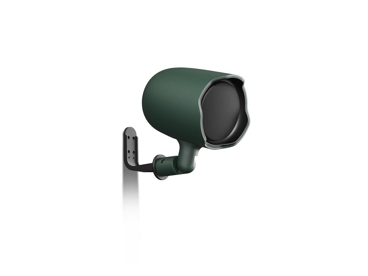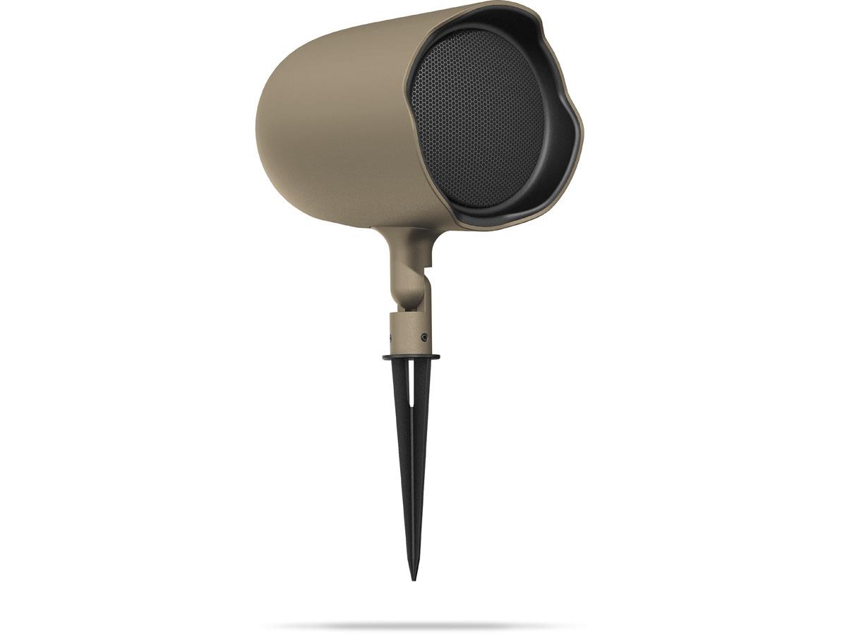 Versatile mounting options include a ground stake for in-ground installation and an L-bracket for secure mounting on either horizontal or vertical surfaces (both are included). A low-profile, unobtrusive speaker, the GSF6 blends right into its surroundings, and is aimable for precise coverage via an adjustable hinge. Available in hunter green and tan finishes.