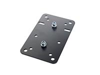 Loudspeaker-Mount Section of bracket attaches to the included insert points on the back panel of the speaker (using the M6x15 mm bolts, flat washers & lock washers that come with the speaker). Mounting points are at 254 mm x 70 mm (10 x 2-3/4 inch) spacing.