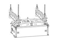 The VTX A8 AF EB extension bar was designed to operate in conjunction with the VTX A8 AF array frame to facilitate either single-point, two-point front-to-back or side-by-side suspension methods. The extension bar is compatible with 5/8-inch shackles and can be stored above the array frame during transportation. The extension bar can extend to the front or the rear of the frame to accommodate both up-tilt and down-tilt aiming options. Three connection points are available for attaching the extension bar to the array frame, allowing for precise control of shackle positioning for single-point applications.