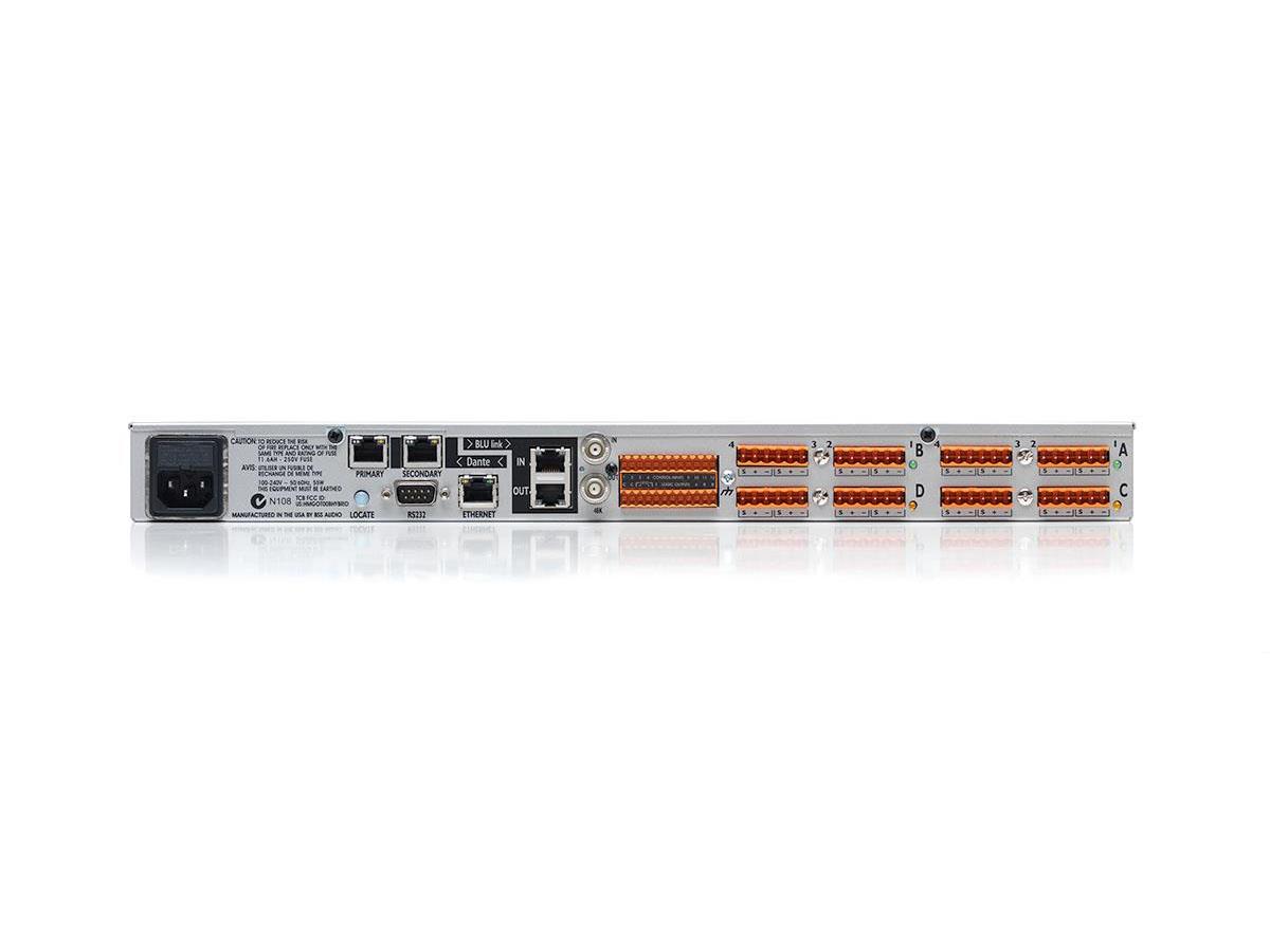 The BLU-806DA also features a low latency, fault tolerant digital audio bus of 256 channels which uses standard Category 5e cabling giving a distance of 100m between compatible devices. Fiber optic media converters can be used to increase the distance between devices to over 40km. 12 Control Inputs and 6 Logic Outputs allow the BLU-806DA to be integrated with GPIO compatible devices. The Soundweb London Interface Kit, comprehensive documentation which details how Soundweb London systems can be integrated with third party control systems, is included within the installation of HiQnet Audio Architect.