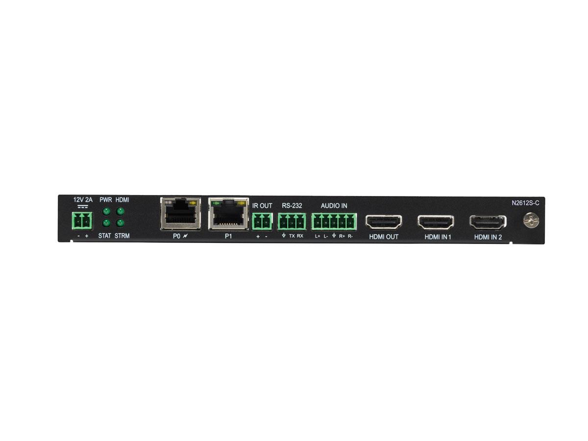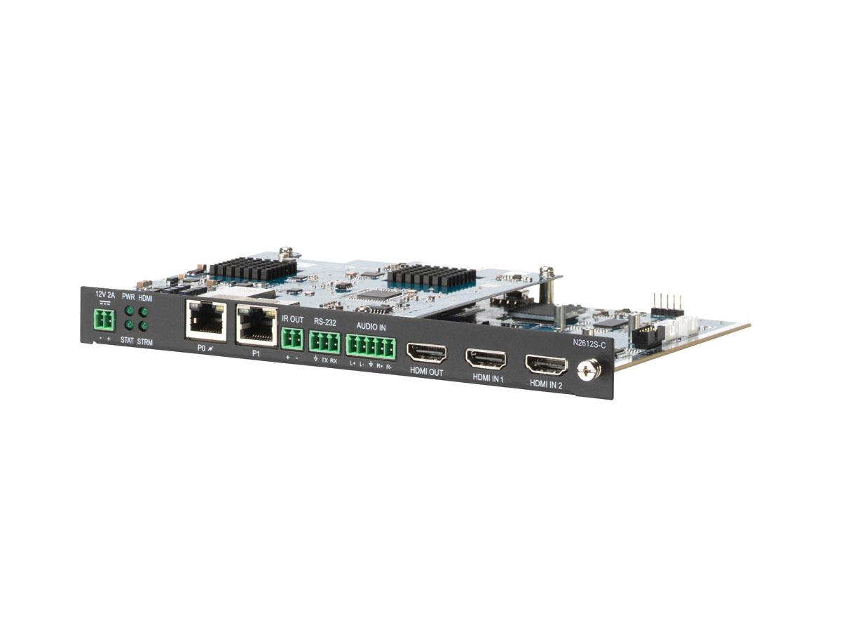 The AMX SVSI NMX-ENC-N2612S-C is a cost-effective, powerfully robust multi-codec, dual-stream encoder card. It features a high-quality, low-latency 4K60 4:4:4 MWC codec that is ideal for decoding both live video and detailed content in classrooms, meeting spaces, courtrooms, bars, and other applications.