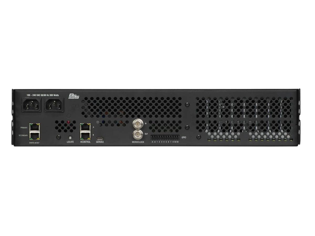 The 256p features 256x256 at up to 96kHz Dante/AES67 networked audio channels; enterprise-grade network security support; an onboard scripting engine developed by AMX; 24/48kHz and 24/96kHz supported bit depth/sample rates; 8 GPIO ports (fully flexible); 80 AEC channels; 32 VoIP lines; high precision word clock and BNC clock (in/out); dual redundant power supplies, Dante and HControl; 128 channel internal media player with 500GB SSD; full-color, interactive front panel LCD; and more.