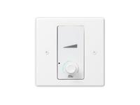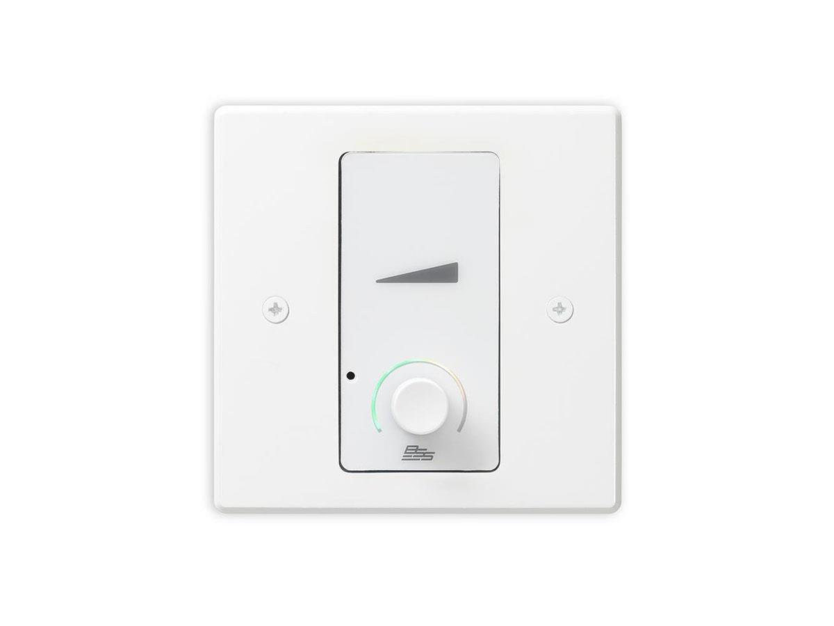 The Soundweb Contrio EC-V is an Ethernet wall controller for use in Harman HiQnet systems. The EC-V contains a single Ethernet port for configuration, control, monitoring, and power via PoE. It's configured via simple drag-and-drop operations within the software application HiQnet Audio Architect. The device contains one push/rotary encoder and one encoder ring. The encoder ring is multi-color backlit, capable of eight different colors with adjustable intensity.