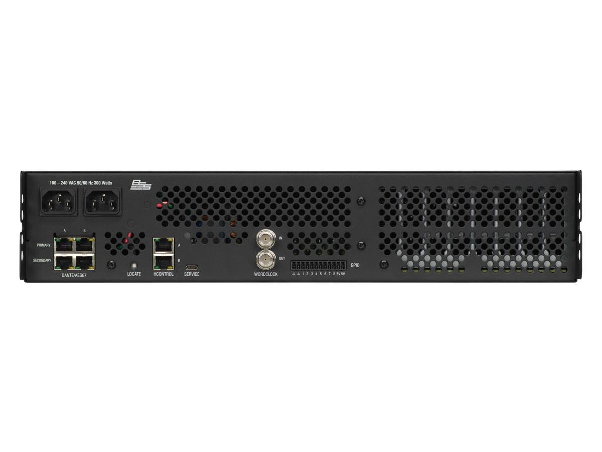 The 512p features 512x512 at up to 96kHz Dante/AES67 networked audio channels; enterprise-grade network security support; an onboard scripting engine developed by AMX; 8 GPIO ports (fully flexible); 160 AEC channels; 64 VoIP lines; high precision word clock and BNC clock (in/out); dual redundant power supplies, Dante and HControl; 128 channel internal media player with 1TB SSD; full-color, interactive front panel LCD; and more.