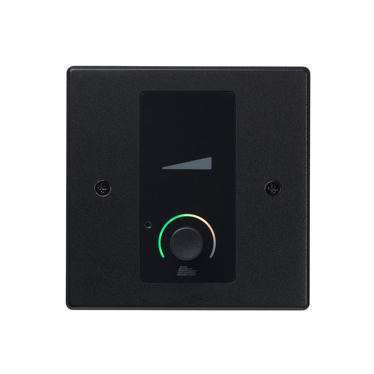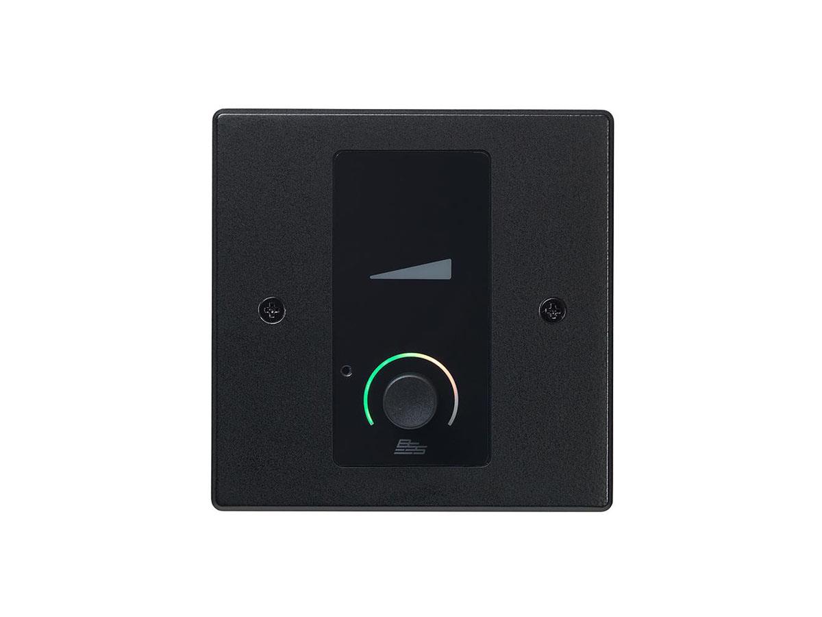 The Soundweb Contrio EC-V is an Ethernet wall controller for use in Harman HiQnet systems. The EC-V contains a single Ethernet port for configuration, control, monitoring, and power via PoE. It's configured via simple drag-and-drop operations within the software application HiQnet Audio Architect. The device contains one push/rotary encoder and one encoder ring. The encoder ring is multi-color backlit, capable of eight different colors with adjustable intensity.