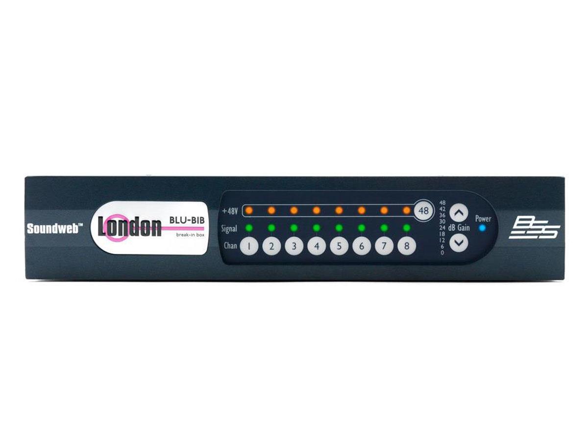 The BLU-BIB input channels are easily configured by six DIP switches located on the rear of the device, which select consecutive channels in groups of eight. This simple configuration allows assignment to any 8-channel range within the 256 channels available on the digital audio bus. Input channel assignments are configured by DIP switch selection only. The BLU-BIB is not configured by HiQnet™ Audio Architect. Each channel’s input gain and Phantom Power are adjusted using buttons on the front panel.