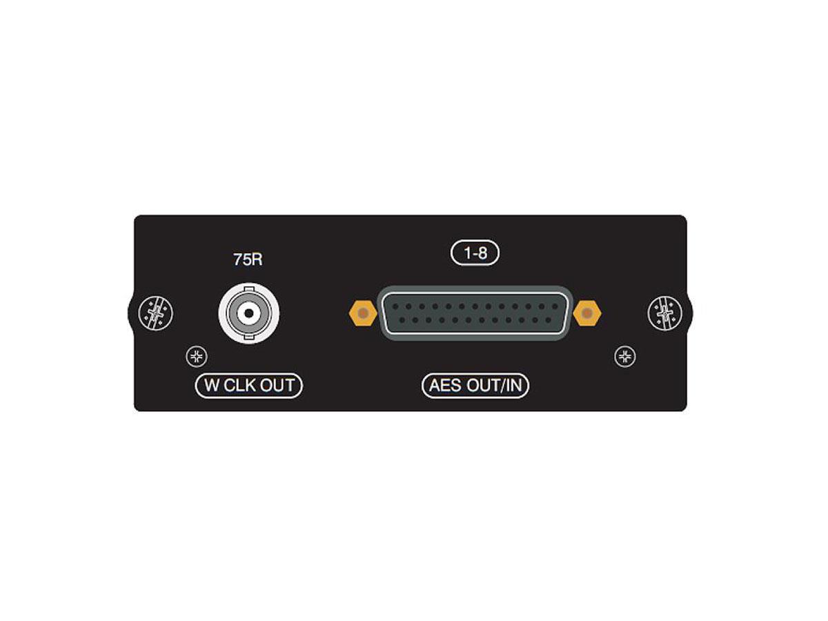 - A D-Type connector based AES/EBU input/output card with 8 inputs and 8 outputs. A separate BNC connector for wordclock output is provided
