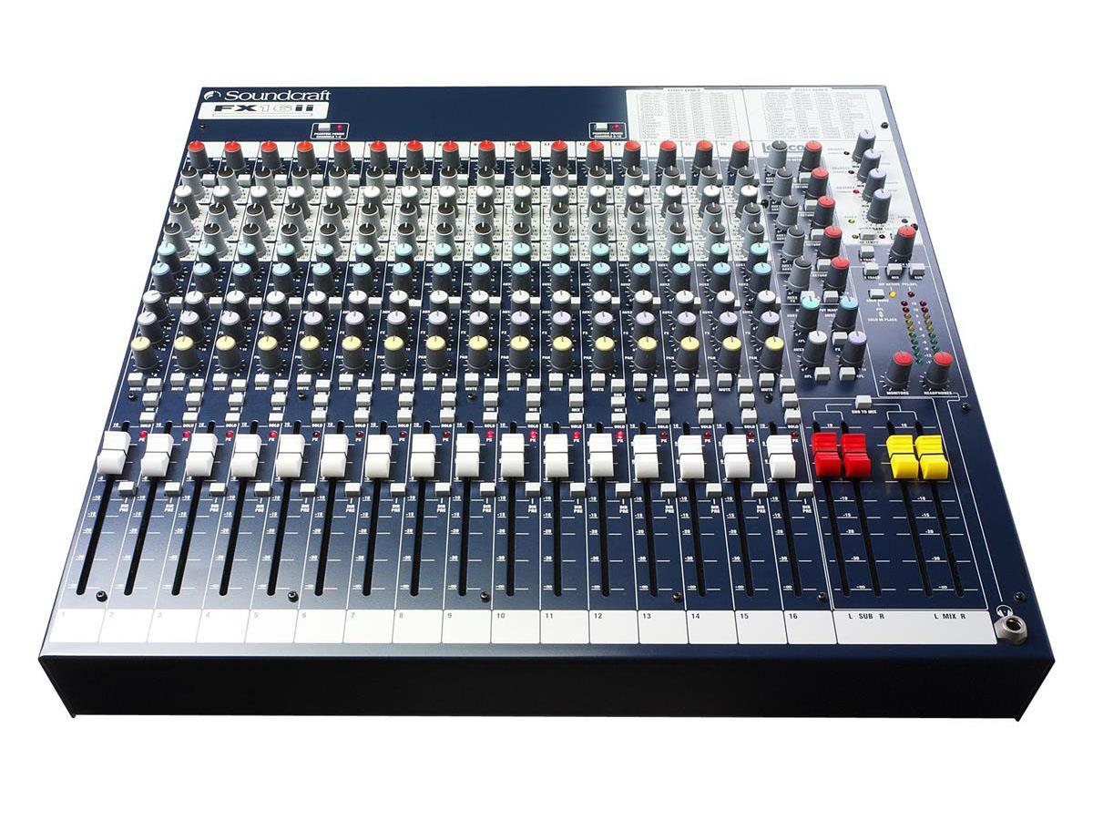 The Soundcraft FX16ii offers a combination of powerful live and recording features; each channel has a Direct Output which is individually switch-able pre or post fader to enable use with 16-track recording systems. The Lexicon effects work just as well in the live as well as the recording environment with a tap tempo function, 3 parameter controls, user effects settings store ability, effects clip LED and 32 powerful and editable effects to choose from.