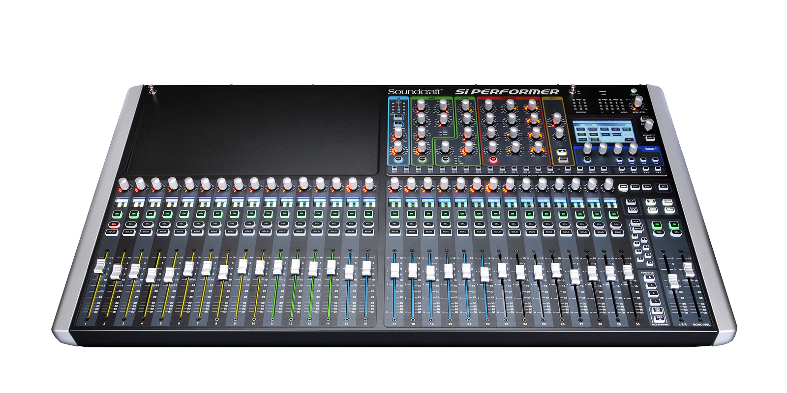 Drawing on the combined heritage of legendary Soundcraft quality and the powerful and intuitive Vi Series digital live sound mixers, the Si Performer brings unparalleled mix power and performance to small format digital live sound mixers. The Si Performer 1 features 16 local recallable mic pre amps and 8 stereo inputs along with two ViSi Connect™ option card slots with an additional 128x96 input/output paths (one 64x64 expansion slot and another 64x32 expansion slot). Able to utilise Si series ViSi Connect™ option cards, the Si Performer gives a large range of additional digital I/O connectivity including the MADI USB Combo, BSS Digital Audio Bus (BLU Link), Dante™, CAT5 or optical MADI, AVIOM™, CobraNet™ and others with a massive mix capacity of 64 mono inputs for a total of 80 inputs to mix.