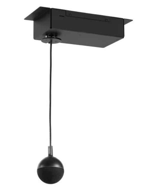The CeilingMIC pendant includes a 0,9m adjustable drop cable and with a standard RJ45 jack connection, the pendant can be extended to a total length of 5 meters from the interface box.
