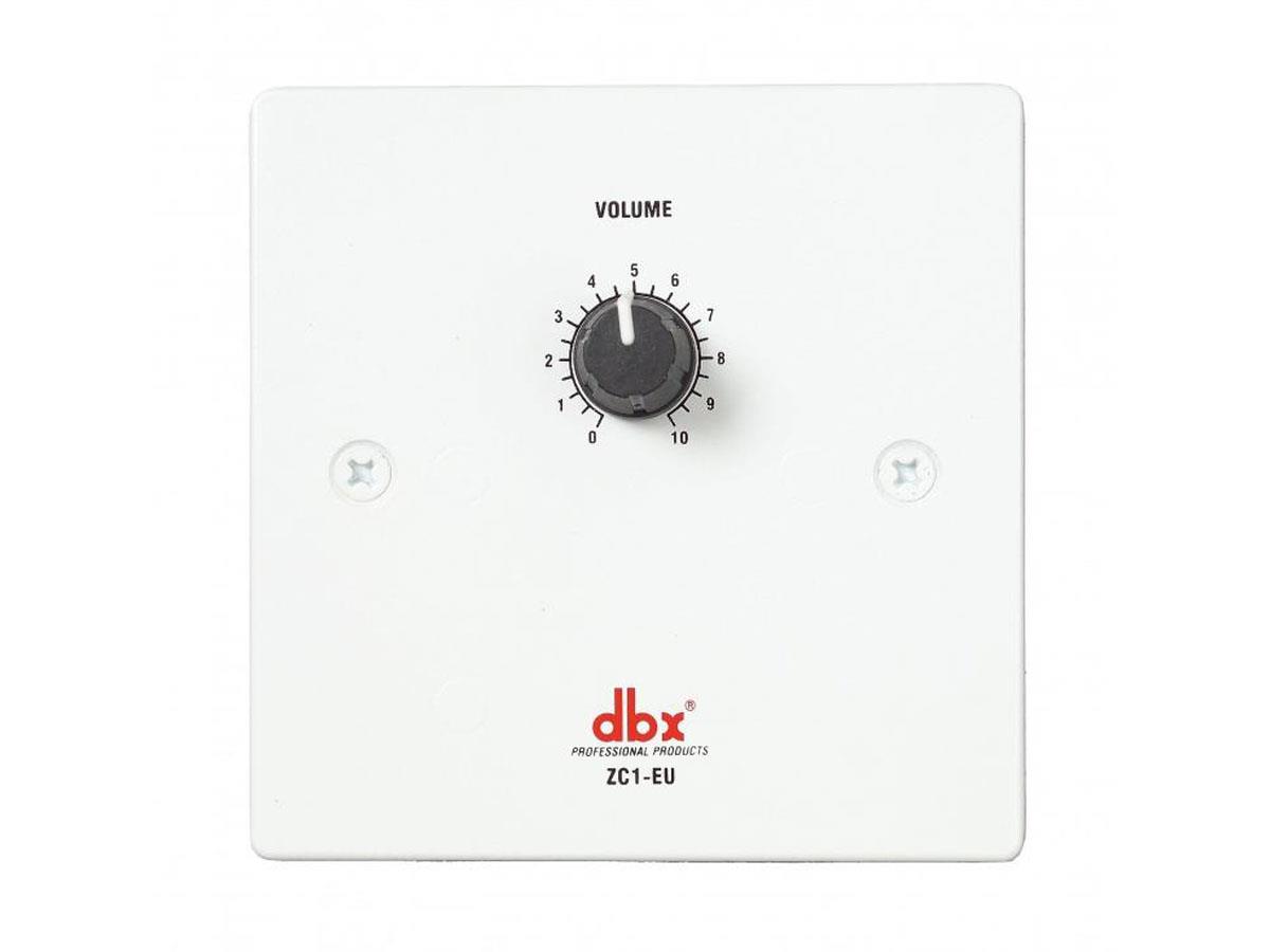 The remote device shall provide computer programmable rotary potentiometer volume control for the dbx DriveRack 260, 220i and ZonePRO™ devices. The remote device shall have DIP switches allowing identification with connection to the processing device via CAT 5 cable on RJ-45 connectors. The device shall be a dbx ZC-1-EU remote controller.