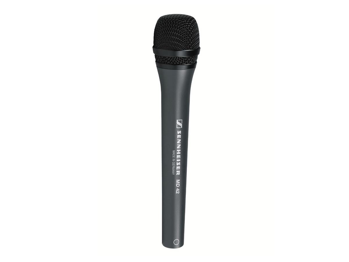 The MD 42 is a high-quality reporter's microphone with omni-directional pick-up pattern. It has been specially optimised for rough use in live reporting and broadcasting environments. The MD 42 is a very 'good-natured' microphone whose design avoids wind and handling noise problems. Colour: black, sound inlet basket: refined steel, black.