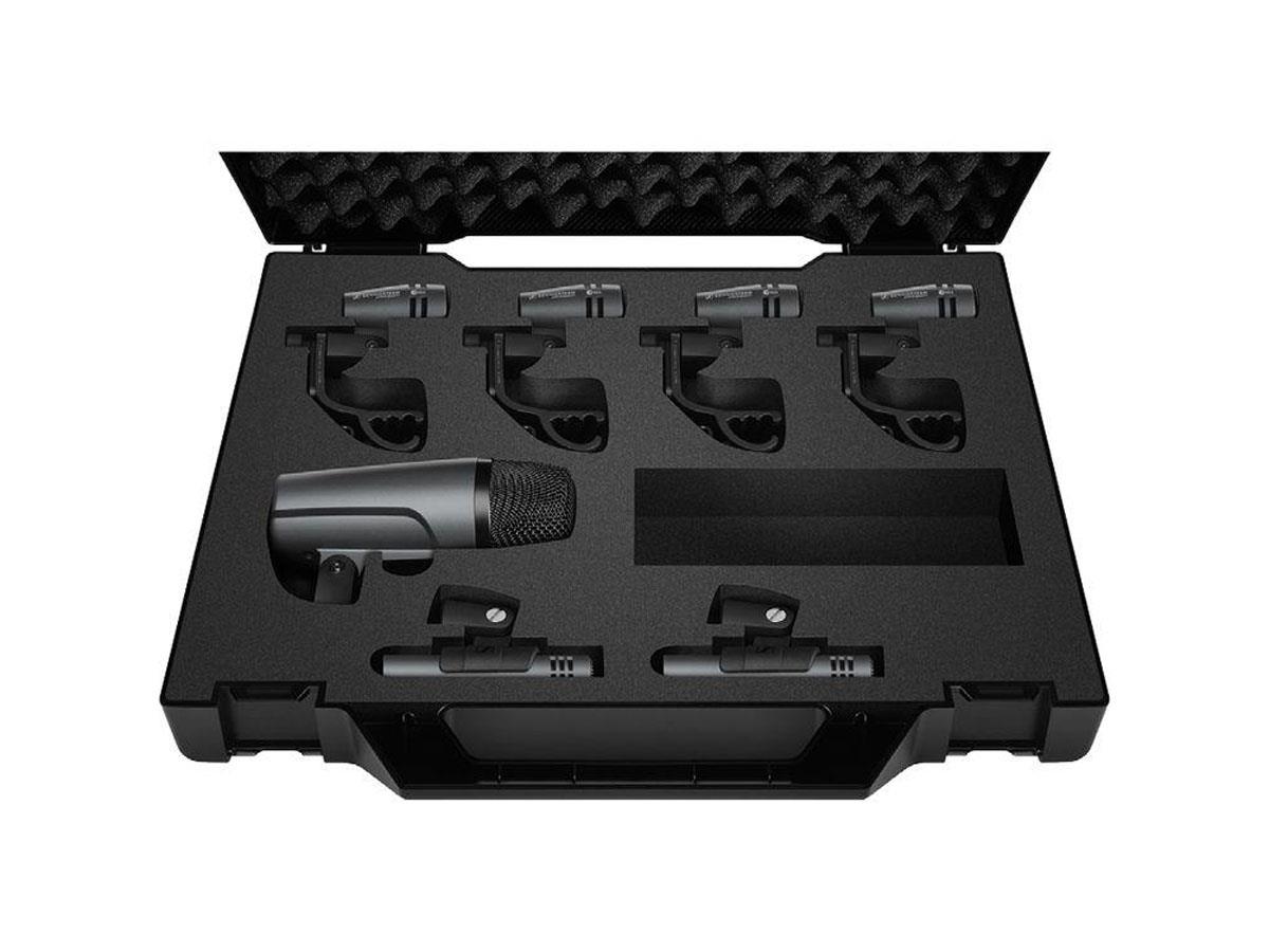 All you need for a powerful drum performance in a heavy duty case for optimal protection: 1x e 602-II, 4x e 604, 2x e 614. All you need for a powerful drum performance in a heavy duty case for optimal protection. Includes 1x e 602-II, cardioid instrument microphone for bass drums, 4x e 604, cardioid microphone for snare and tom-tom, and 2x e 614, super-cardioid, permanently polarized condenser microphone for cymbal and overhead.
