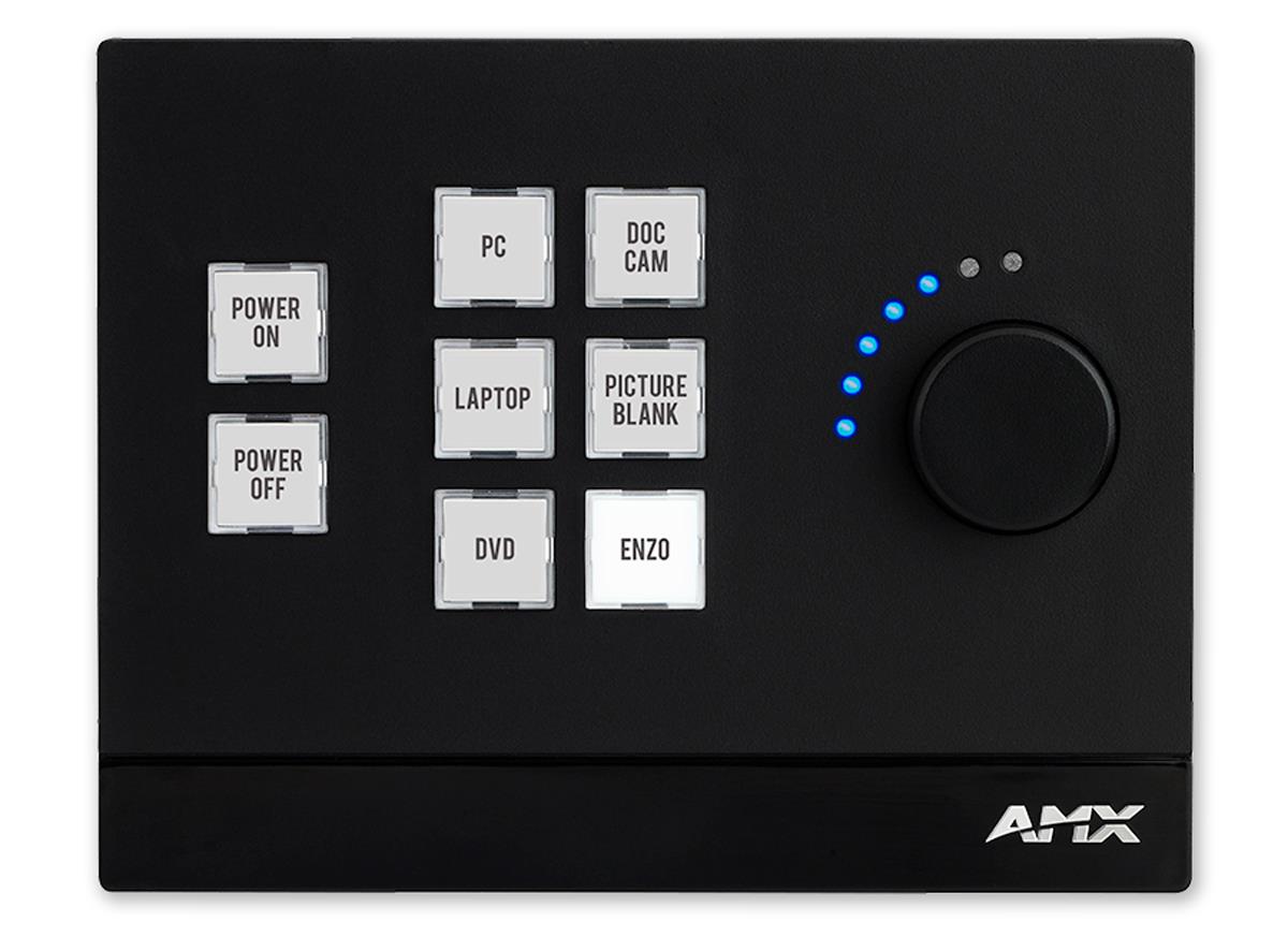 The MKP-108 / 8-Button Massio Keypad with Knob is a keypad-only version of the MCP-108 Massio ControlPad. The MKP-108 provides sleek Massio styling in any room, serving as a second user interface or as a primary UI in spaces that already contain a separate controller. The MKP-108 includes large, easy-to-read buttons and a smooth, responsive dial/knob in a stylish design that makes it simple for users to manage complex tasks with a single button press during meetings or classes. The Keypad connects to the controller via Ethernet, which simplifies installation and connectivity.