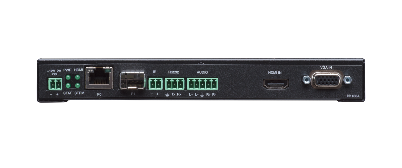 The new NMX-ENC-N1133A model features improved digital pixel reproduction and cut the already imperceptible latency in half. Packetized video streams not only remain visually lossless throughout distribution, they also arrive instantly. It has separate HDMI and VGA/RGB inputs, supports PoE, AES67, and has a separate SFP port. The SFP fiber path allows visually lossless video to be routed on a fiber-only network and extend signals beyond the reach of category cable. Added USB connectivity will enable users to extend USB over IP for touch-enabled and KVM applications.