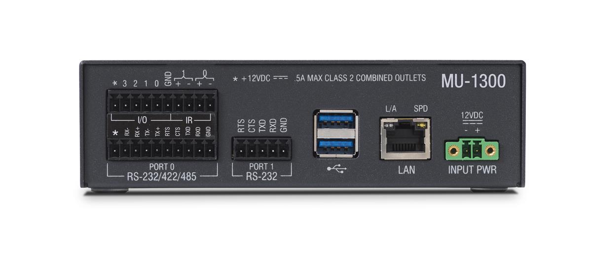 The MU-1300 is a compact device that requires a one-third width rack space and includes 2 serial ports, 2 IR ports, and 4 I/O ports.