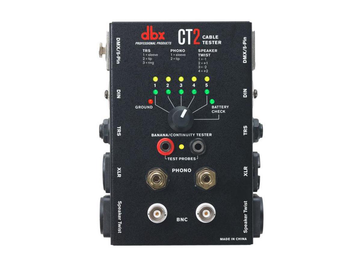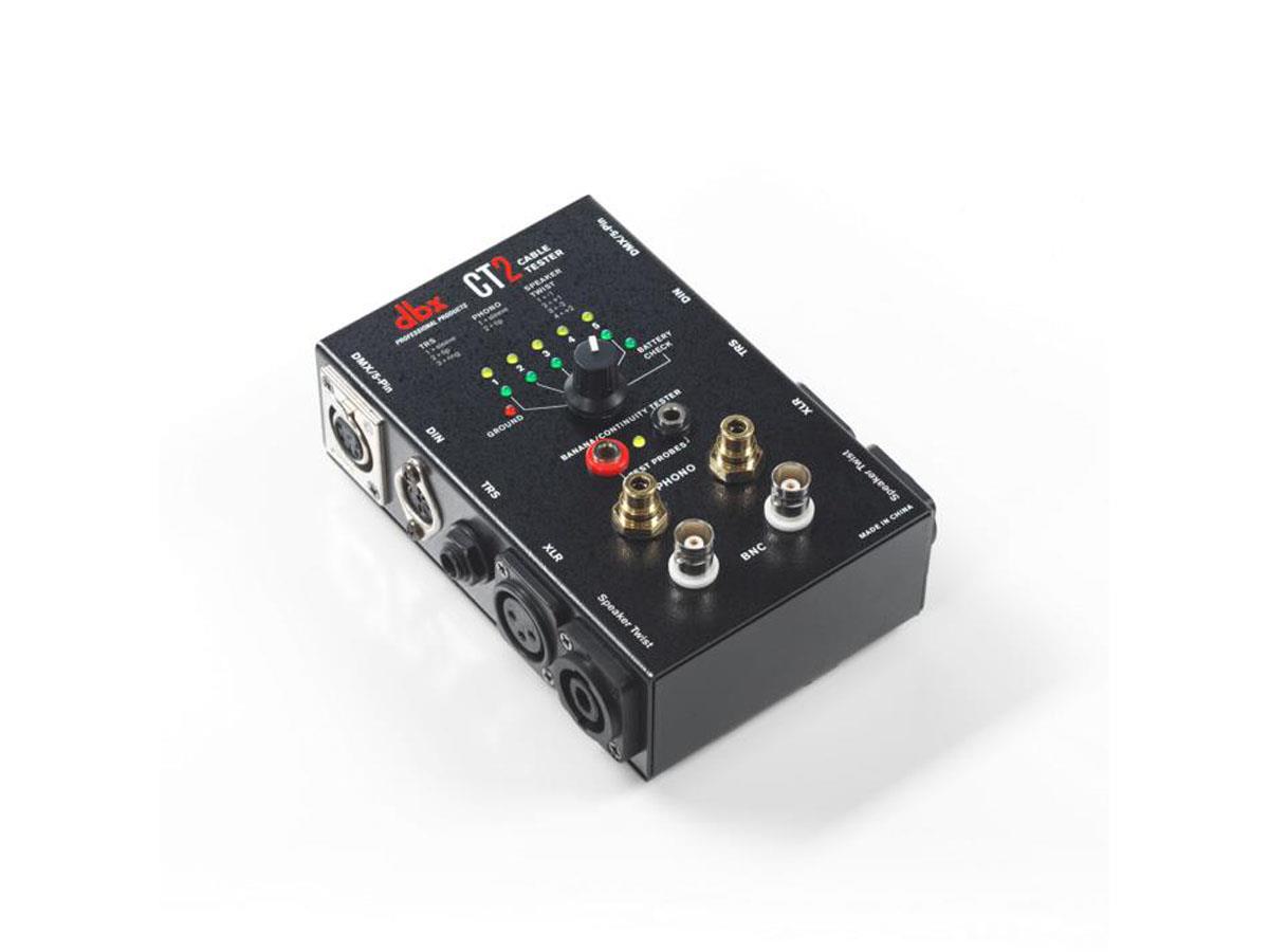 We all know how frustrating and time consuming it can be when your audio cables fail. With the dbx CT2 cable testing unit you can now evaluate a large variety of your cables with ease. The CT2 offers many common connectors such as Speaker Twist, XLR, Phono, BNC, DIN, TRS, TS, DMX, & Banana.