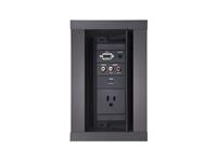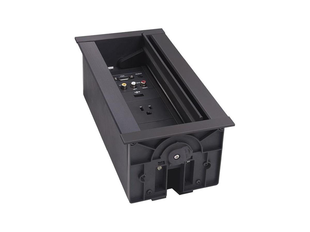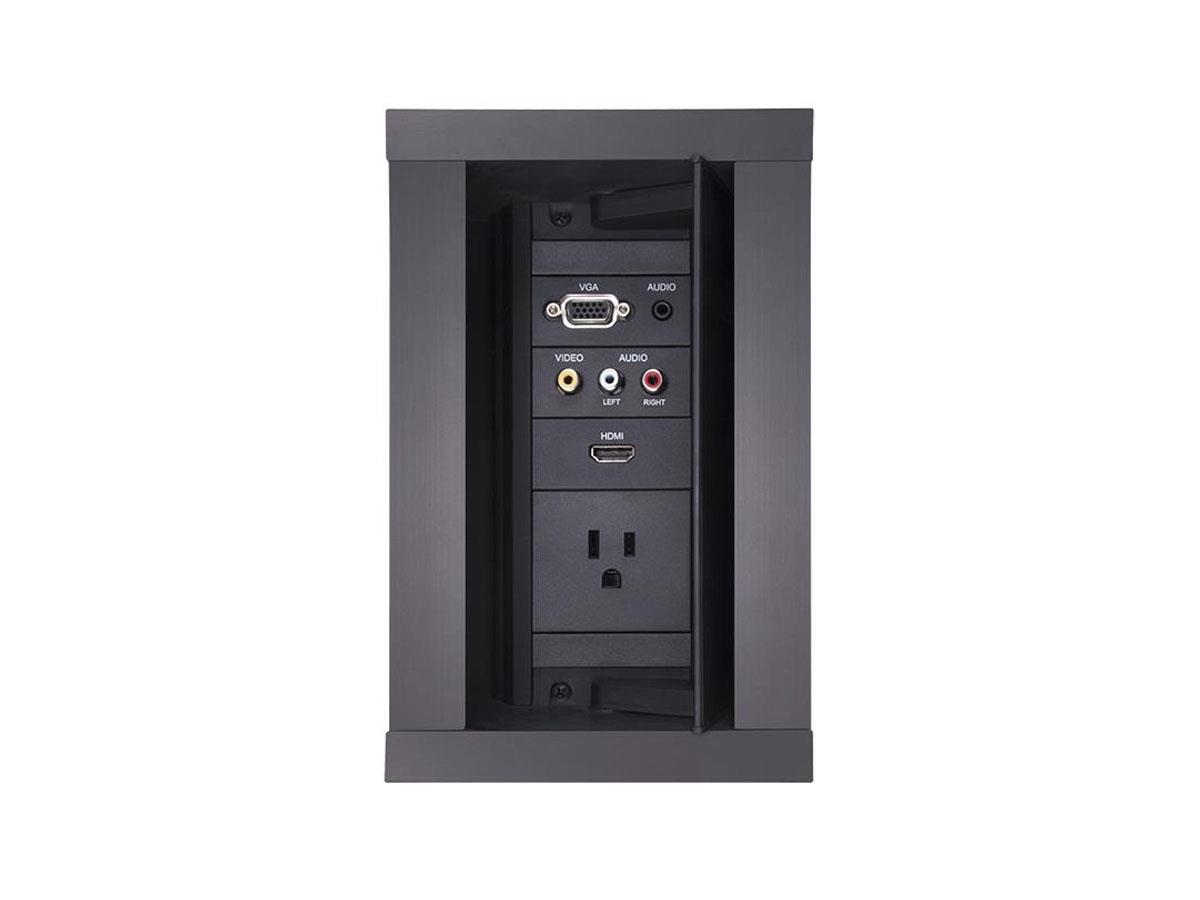 The HPX-600 / HydraPort® 6 Module Connection Port is a modular AV table box for connecting mobile devices to projectors or displays in a conference room or classroom. This sleek, flush-mount table box is typically installed in a conference room or classroom table, featuring a uniquely-designed lid that conveniently opens in both directions to provide a clean, unobtrusive look.