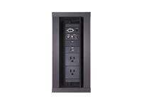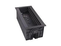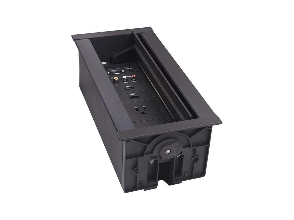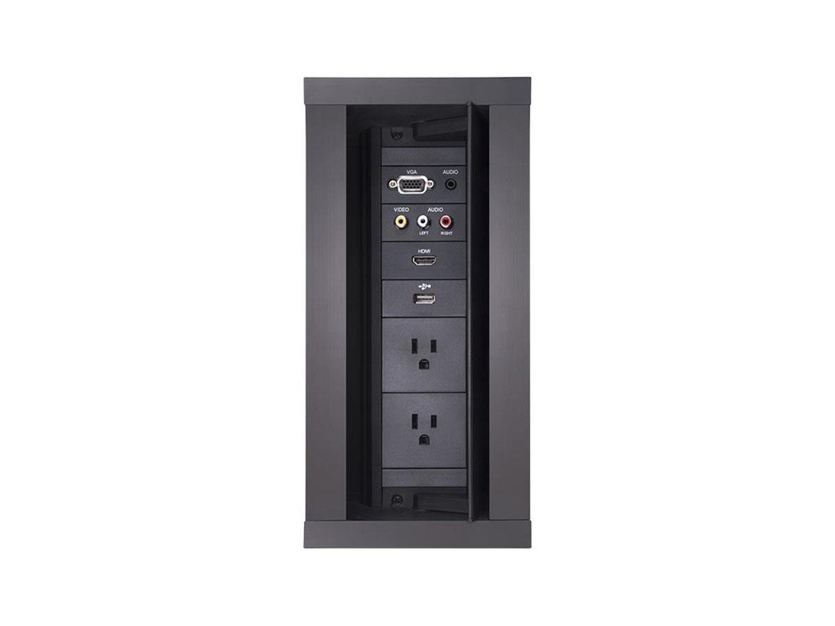 The HPX-900 / HydraPort® 9 Module Connection Port is a modular AV table box for connecting mobile devices to projectors or displays in a conference room or classroom. This sleek, flush-mount table box is typically installed in a conference room or classroom table, featuring a uniquely-designed lid that conveniently opens in both directions to provide a clean, unobtrusive look.