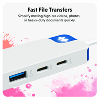 Take your desk setup to the next level. Whether you're gaming, designing, or juggling deadlines, the HyperDrive Flex 5 Port USB-C Hub keeps you seamlessly connected. Enjoy crisp 4K monitor support for sharp visuals while editing, streaming, or multitasking. Power your laptop and other devices simultaneously with the 100W Power Delivery USB-C port, and transfer files in seconds via its high-speed USB ports. With a sleek design crafted from 75% post-consumer recycled plastics, it’s bold, functional tech that complements your style.