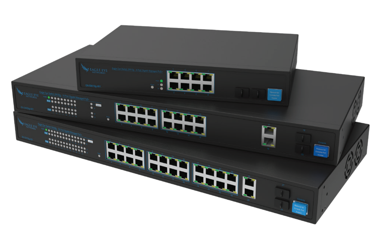 Eagle Eye Managed PoE switches are industry standard highly reliable PoE switches designed to seamlessly integrate with the Eagle Eye