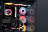 The CORSAIR RS-R ARGB 120mm PWM Reverse Fans Triple Pack delivers efficient cooling with three reverse rotor fans. Daisy-chain connectors simplify control via one 4-pin PWM and +5V ARGB header. Enjoy speeds up to 2,100 RPM, vibrant lighting from eight LEDs, quiet Magnetic Dome bearings, and silent Zero RPM mode at low loads.