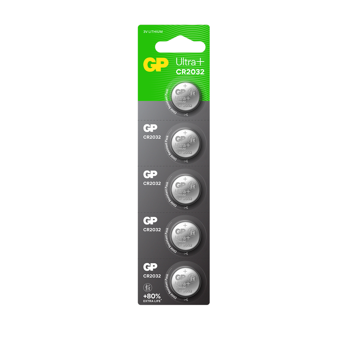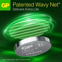 GP Ultra Plus Litium-knappcellsbatterier CR2032 är designade med en patenterad Wavy Net-teknologi för stabil energi och upp till 80 % längre livslängd*.