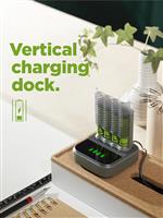 D451 är en advancerad laddstation för din ReCyko-laddare. Den förser dig med viktiga batteridetaljer och gör din laddning lättare än någonsin. Laddstationens unika design tar upp mindre yta genom att hålla din ReCyko-laddare i en vertikal position, dessutom laddas den via USB-kontakt vilket gör den optimal för hemma- så som kontorsbruk. När en laddare sitter i stationen så visar LCD-displayen laddstatus för varje batteri samt batteriets skick, så att du påminns när det är dags att byta ut gamla batterier.