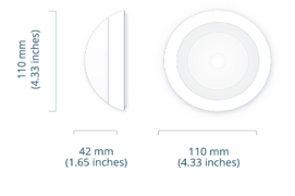 The Wireless Motion Sensor uses Passive Infrared Sensor (PIR), with a 360° field-of-view and up to 14 meters (46 ft) detection diameter to detect people. It has a battery life of up to 15 years, powered by 2x replaceable AA batteries