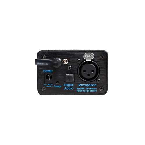 48V Phantom-powered XLR microphone input, with up to 50dB of gain