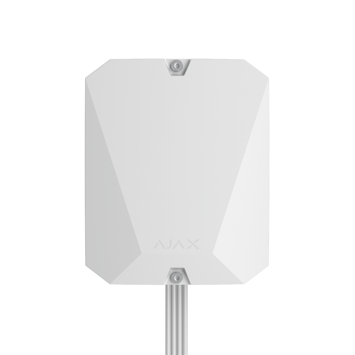 Centralapparat Hub Hybrid för att ansluta både Ajax trådlösa och trådbundna enheter till. Hubben kan kommunicera via Ethernet eller 4G.