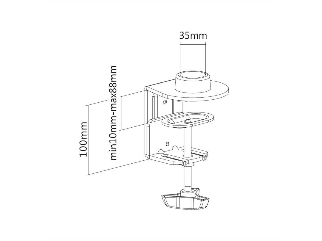 Rigid construction can hold up to 6 monitors weighing at 8 kgs each. M Desktopmount Single / Dual / Triple/ Quad Clamp manages table widths of up to 50mm.