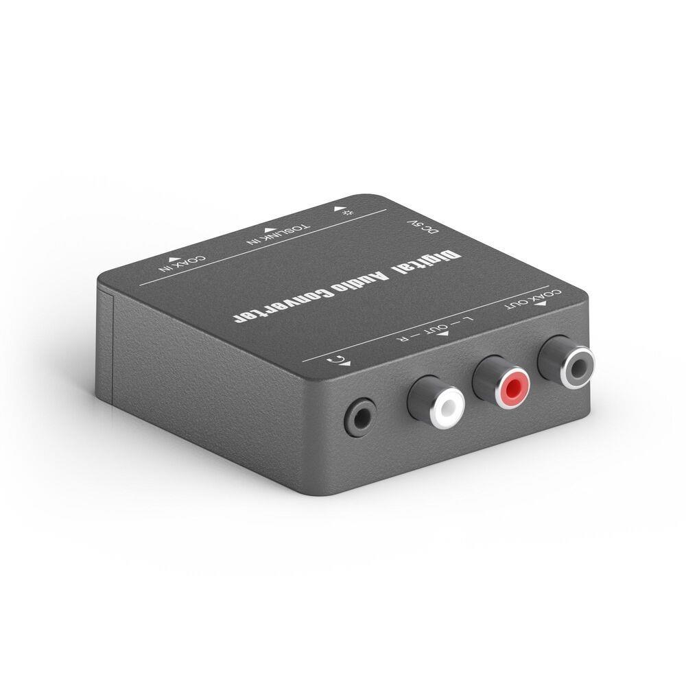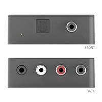 - Digital-to-Analogue Audio Conversion: The converter processes incoming S/PDIF or Toslink digital audio signals, outputting analogue stereo audio through both RCA L/R and 3.5mm connectors for compatibility with a wide range of AV amplifiers and speakers.
