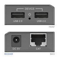 - Convenient ports: The transmitter features a USB-B port input, while the receiver has 2x USB-A 2.0 device ports, allowing you to connect multiple devices.