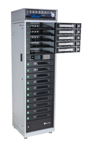 Network Connected. An optional Network Kit vastly expands the data transfer capabilities of the FUYL Tower 5 or 15 through individual Ethernet connections to each compartment. The Network Kit allows IT Departments to install a network switch to the top of a Tower and connect devices from each bay to a network, making it possible to re-image devices remotely.