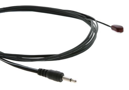 The 3m cable is terminated with a 3.5mm mini connector that can be removed if needed. The transparent emitter adheres to the IR receiving device with double−sided tape.