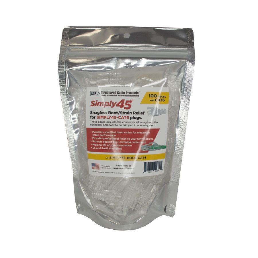 SIMPLY45 SNAGLESS BOOT/STRAIN RELIEF FOR SIMPLY45-CAT6 PLUGS- CLEAR COLOR- 100 PIECES PER BAG